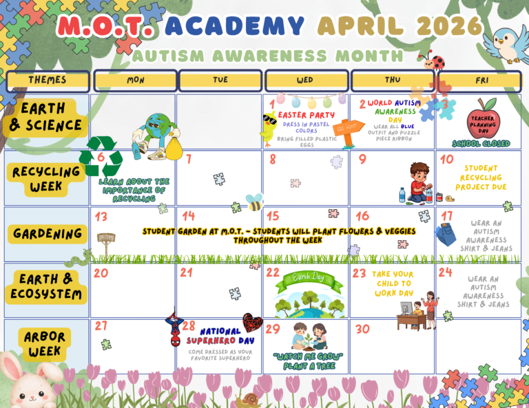 M.O.T. Academy is a school that strives for academic excellence for all children. We offer a customized teaching plan per student, small student to teacher ratio, and a cooperative learning environment. Our goal is to unlock your child’s maximum potential for success by nurturing their unique learning needs.