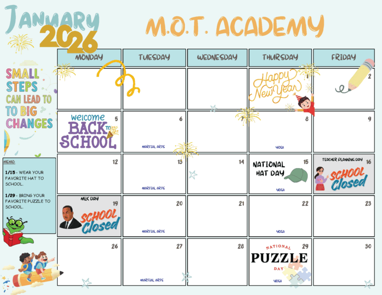 At M.O.T. Academy, we celebrate each student’s unique strengths and support every step of their journey—our personalized approach meets your child exactly where they are, nurturing their academic, social, and emotional growth in a welcoming, engaging environment. From the tiniest cub to the mightiest bear, we grow together.