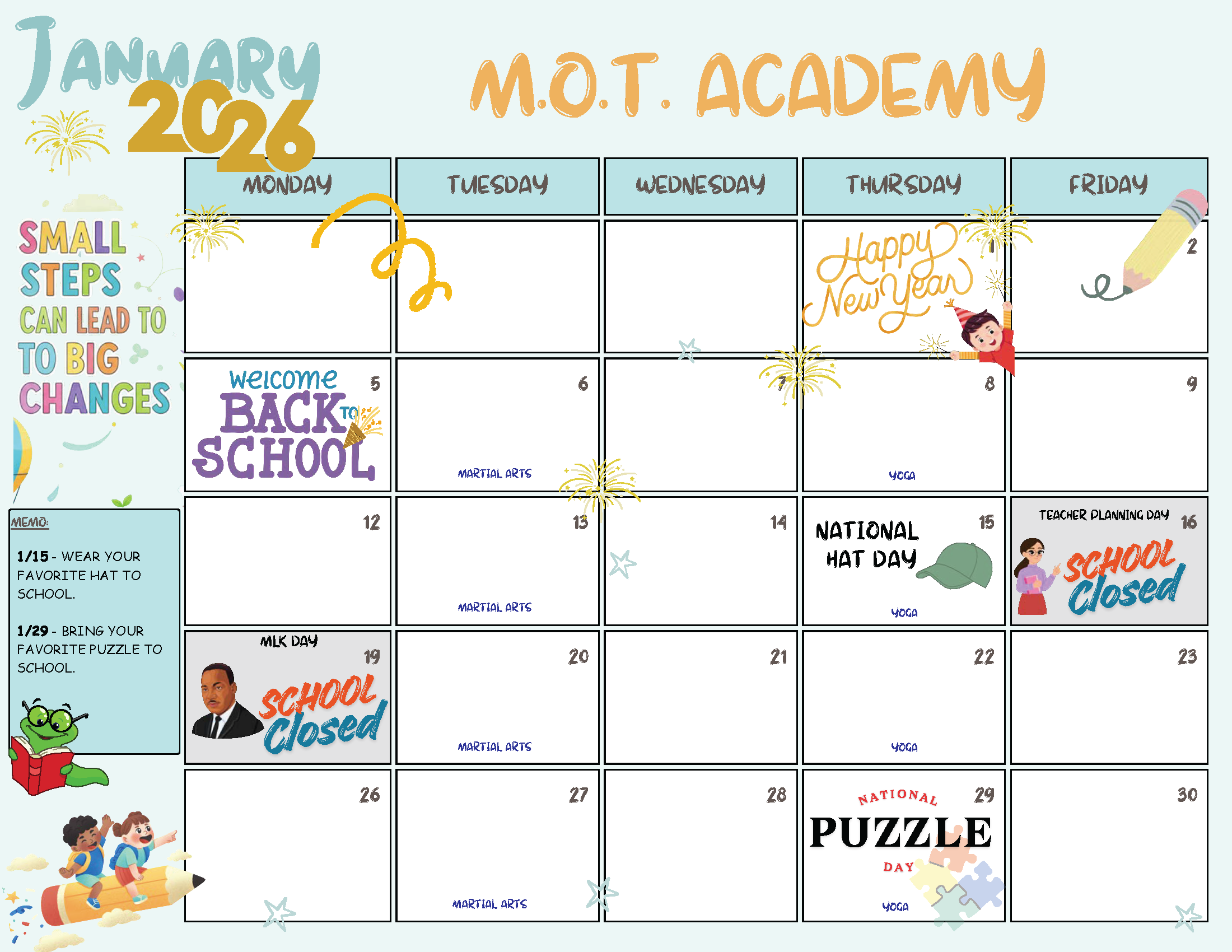 Jan 2026 MOT Calendar